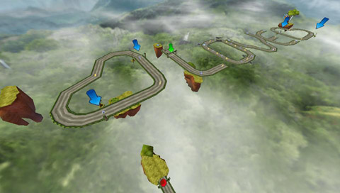 We received this fantastic themed custom track, created by a fan and thought it was simply too good to keep quiet. It was built in game on the PSP with the GripShift Track Editor, adhering to the 200 piece limit.